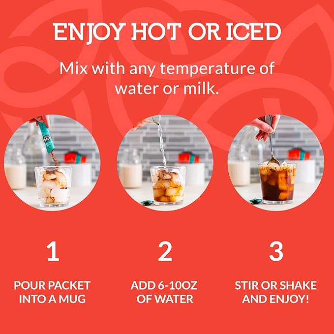 Cusa Tea & Coffee | Premium Instant Medium Roast | Rainforest Alliance Certified Arabica Beans | Hot or Cold Brew Drink Mix Packets (30 Single Servings)