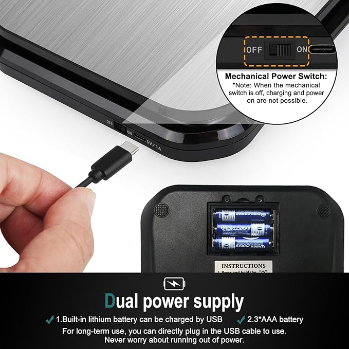 - [ Dual power supply, USB Rechargeable ] With built-in lithium battery can be charged by USB cable. Can also be powered by 3 AAA batteries. (Accessories do not include AAA batteries)ā»Make sure to take out the AAA battery when washing