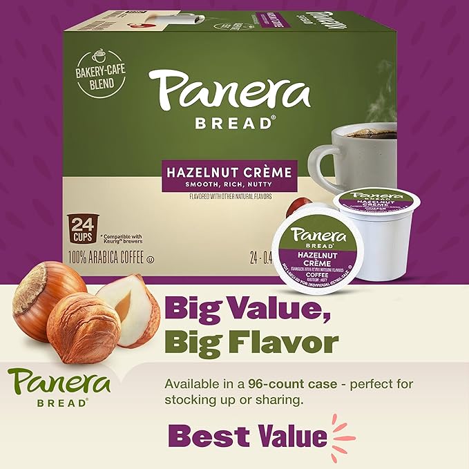 - TASTES EXACTLY LIKE YOUR FAVORITE PANERA CAFE COFFEE - Bring home the same expertly roasted, perfectly balanced hazelnut coffee you'd order at Panera Bread—now brewing in your kitchen at the touch of a button. Tasting notes of smooth, rich, nutty goodness. Kosher certified. Pairs beautifully with your favorite breakfast pastry or afternoon treat.