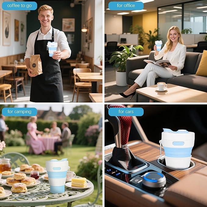 - COLLAPSIBLE HIGH QUALITY TRAVEL COFFEE MUG: Bringing your own reusable mug has never been easier (or fun)! This compact mug holds 15 ounces and folds down to just 2.4 inches. The mug is perfect for drinks and picnics at home or on the go! When you're done using it, simply remove the insulated sleeve and fold it up. Leak-proof, airtight, non-slip and fits in car seats, pockets, purses and backpacks.