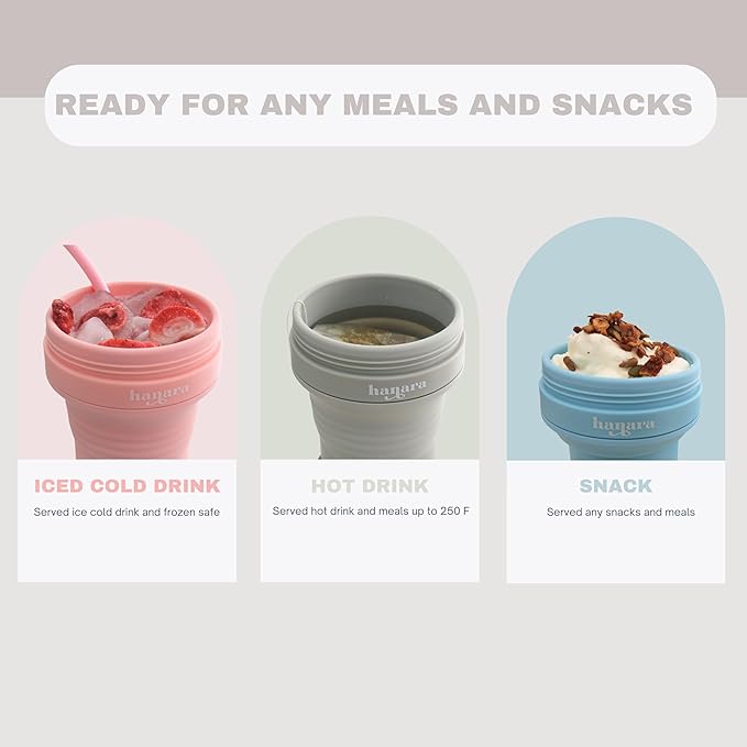 - SAFE AND HIGH QUALITY: Made from food-grade silicone, Bpa-free, Hanra Collapsible Cup is made is both microwave and freezer safe, offering you peace of mind when enjoying both hot and cold drinks. With its leak-proof design, it's durable enough for daily use, so you can take it everywhere, knowing it’s built to last.