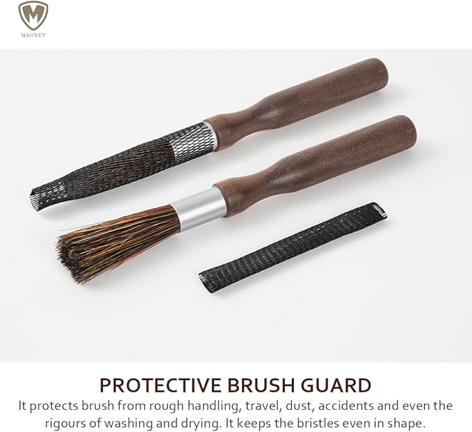 MAGNET Professional Coffee Grinder Cleaning Brush Coffee Brush Handling Accessory Tool Walnut Brush Handle Natural Bristle with magnetic snap for Camping Home Kitchen Barista