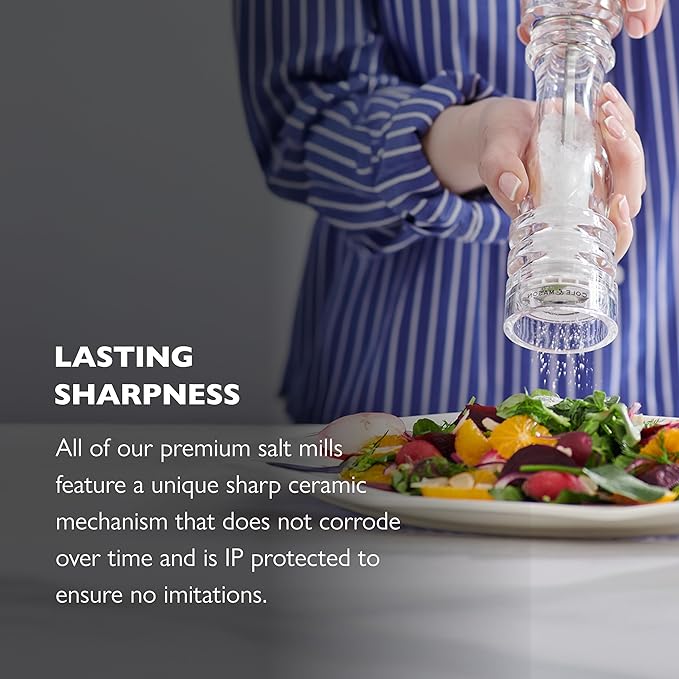 - Adjustable Salt Mill: The Cole & Mason salt mill is fitted with an ultra-sharp ceramic mechanism that doesn't corrode with time; fill the Salt mill with your preferred coarse salt
