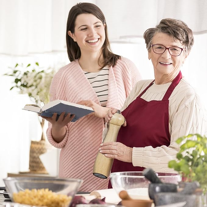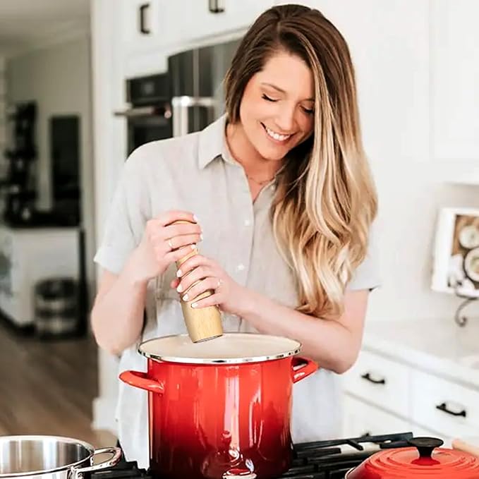 - PREMIUM WOOD CONSTRUCTION: This pepper grinder is made of natural solid oak wood for durability. The 8-inch size can seamlessly integrate into the kitchen countertop, saving space. And the natural wood finish can also complement any kitchen decor.