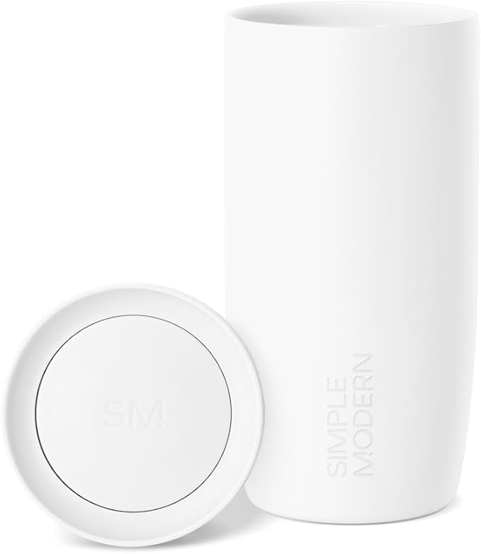 Simple Modern Travel Coffee Mug Tumbler with 360° Lid | Ceramic-Lined Insulated Stainless Steel Cold Brew Iced Coffee Cup | Gift for Women Men Her Him | Voyager Signature | 16oz | Winter White | 360° Lid, Insulated, Cold Brew, Iced Coffee Cup, Thermos