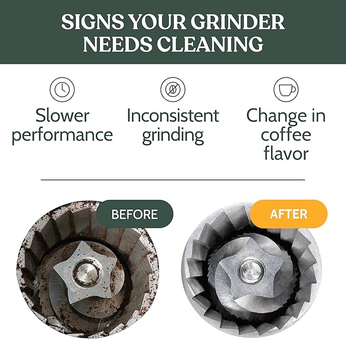 - BOOST GRINDER PERFORMANCE & LIFE - Regular use of our grinder cleaner prevents clogging, enhances precision grinding, and extends the lifespan of your burr grinder. Ideal for coffee enthusiasts and baristas.