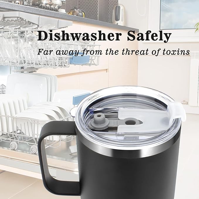 - [High-quality Insulated Cup] - Insulated coffee mug made of food-grade 18/8 stainless steel, resists dents and drops, provides with double-wall vacuum insulation, keep drinks cold up to 12 hours warm up to 6 hours. DISHWASHER SAFE, saving you a lot of time.