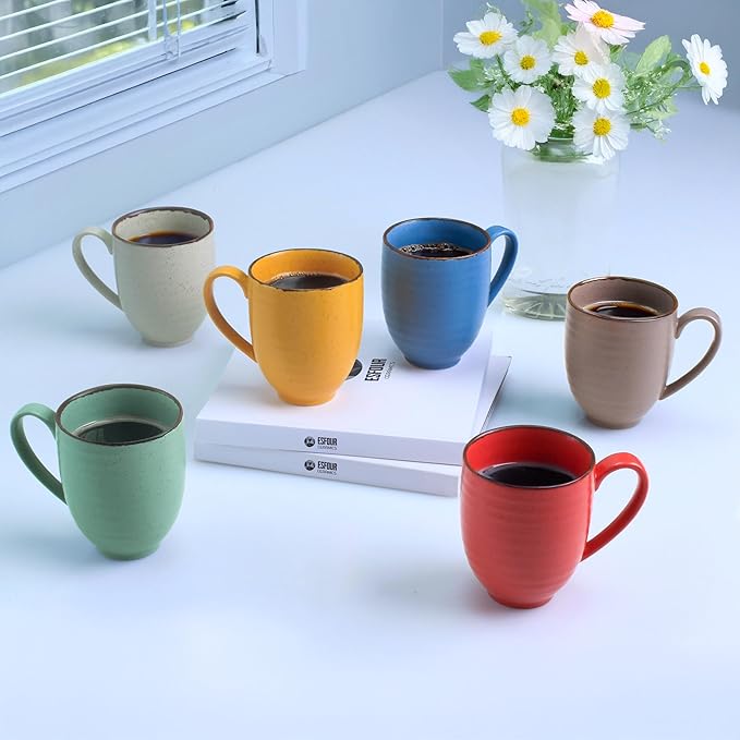 - โ ใ๐๐๐๐๐๐๐๐ ๐๐๐๐๐๐ ๐ ๐๐ ๐๐๐๐๐๐ ๐๐๐๐ใEsfour premium 14 Ounce (Top to the Rim) for Coffee, Set of 6, comes in Natural Assorted Colors. With plenty of space between the handle and the cup itself, both men and women can easily hold the cup in their hand with a comfortable grip, and won't slip off easily. The handle also doesn't get hot after heating it in the microwave.