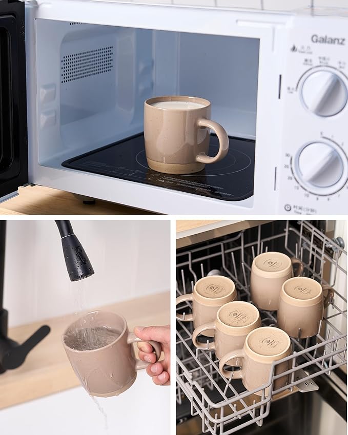 - 【WITHSTAND THE TEST OF TIME】These coffee mugs are made of organic and natural clay, fired at 2340℉ for 13.5 hours to make it sturdy, reliable and chip-resistant for long-term use