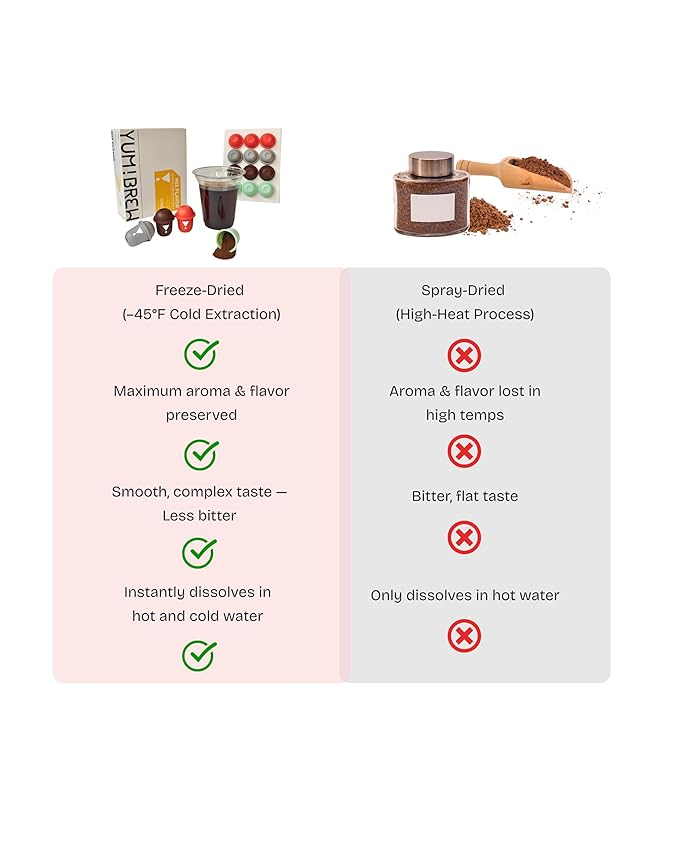 Yum!Brew Instant Coconut Americano Coffee – Freeze-Dried Yunnan Arabica | 12 Servings | Smooth & Nutty Flavor | Hot or Cold Brew | No Sugar | Low Calorie | Travel-Friendly Pods