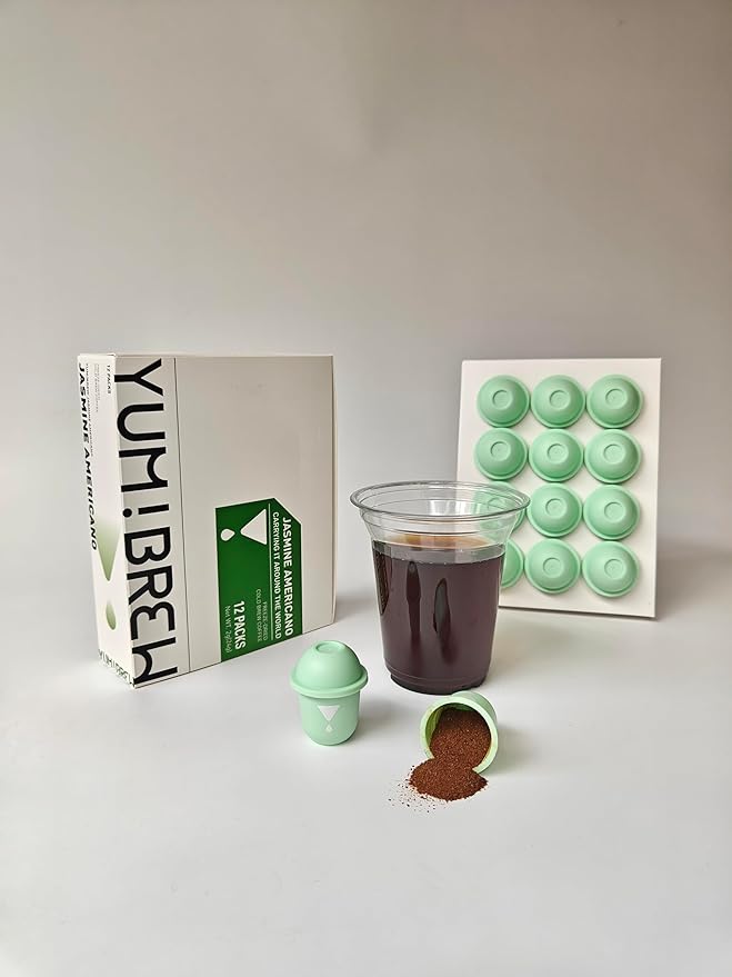 Yum!Brew Instant Jasmine Americano Coffee – Freeze-Dried Yunnan Arabica | 12 Servings | Floral & Smooth | Hot or Cold Brew | No Sugar | Low Calorie | Mini Travel Pods