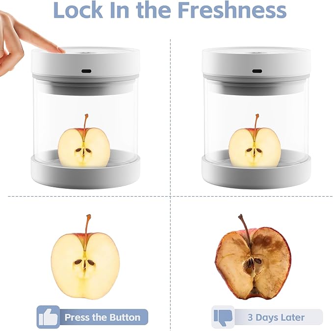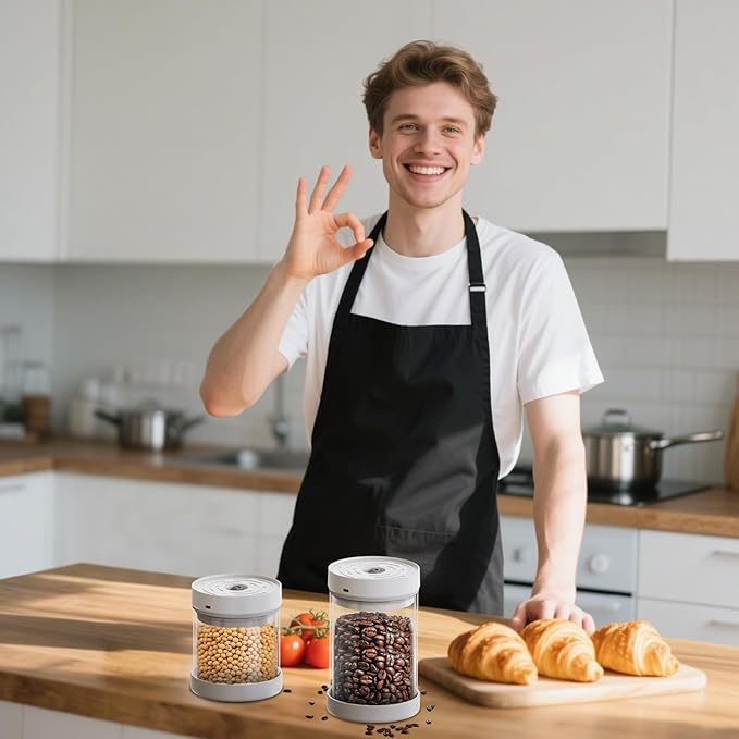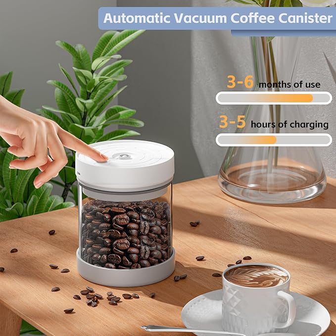 - EXTRA LONG STANDBY TIME: This automatic vacuum canister can automatically start the vacuum program when it monitors the air leakage, and it can pump 200-250 times (about 180 days) after a full charge. It can effectively help you keep the mellow aroma of coffee beans, the spice of spices, the crunch of nuts, and retain the flavor and color of food.