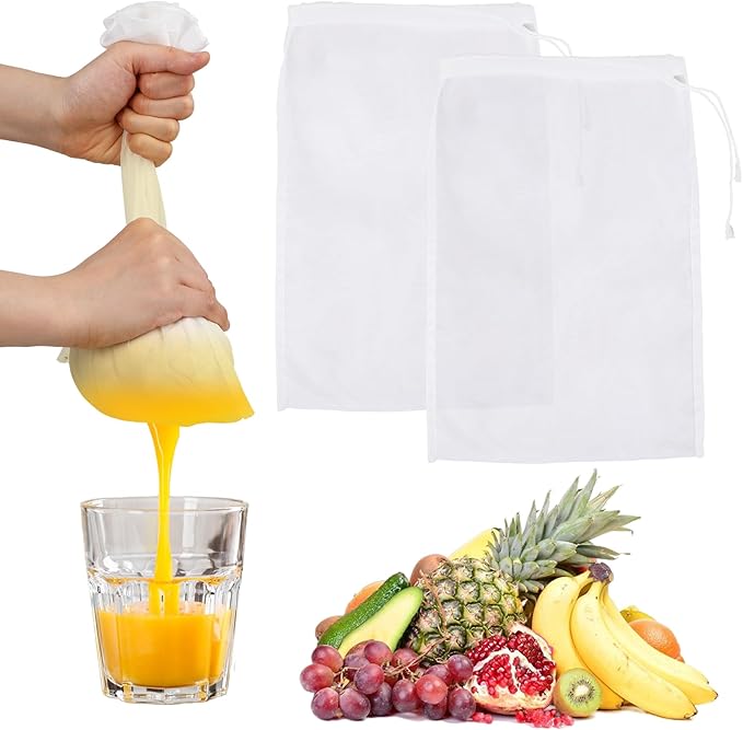 - 【Multi-functional Use】Reusable cheese cloths for straining are essential accessories for making various homemade milks easily. They can be used as yogurt strainer, cold brew bags, juice strainer, fruit strainer, spice bag, jelly bag strainer, nutmilk mesh bag. Cloth strainer for juicing is also suitable for outdoor use, easily preserving the natural taste and nutritional value of food