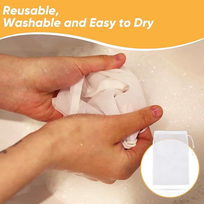 - 【Reusable and Durable】Small mesh strainer supports washing, reusable, durable, odorless, and can be used for a long time. Nylon cheese cloths bags are not easily stained with food residues, can be easily cleaned, and can be quickly dried for storage and next use