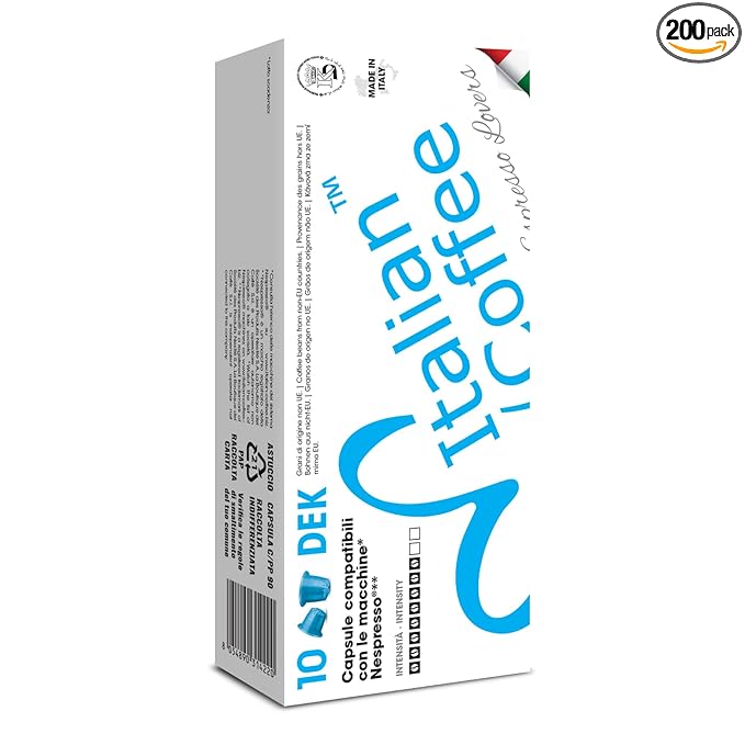 Italian Coffee for Espresso Lovers capsules compatible with Nespresso Original Line machines (DEK Decaf Regular, 200 Count (Pack of 1))