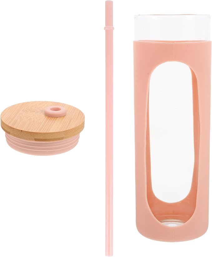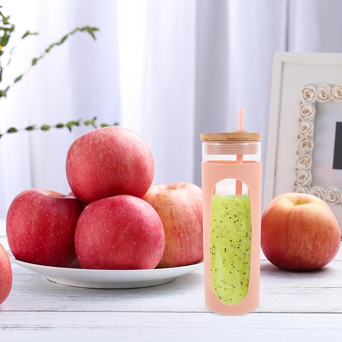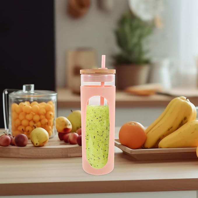 Glass Water Cup with Lid and Straw, Reusable Glass Tumbler with Silicone Sleeve, 16oz Coffee and Juice Drinking Cup for Cold Brew and Beverage on The Go